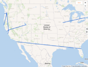 | 19:47, 9 March 2022 | 2022-ROUTE.png (file) | 2.13 MB | artsy map of USA. shows route from santa rosa ca to philadelphia pa south along the california coast, along southern border of USA then north from Florida, east through the appalachian mountains, then north along the east coast. line is made of green bell peppers | |