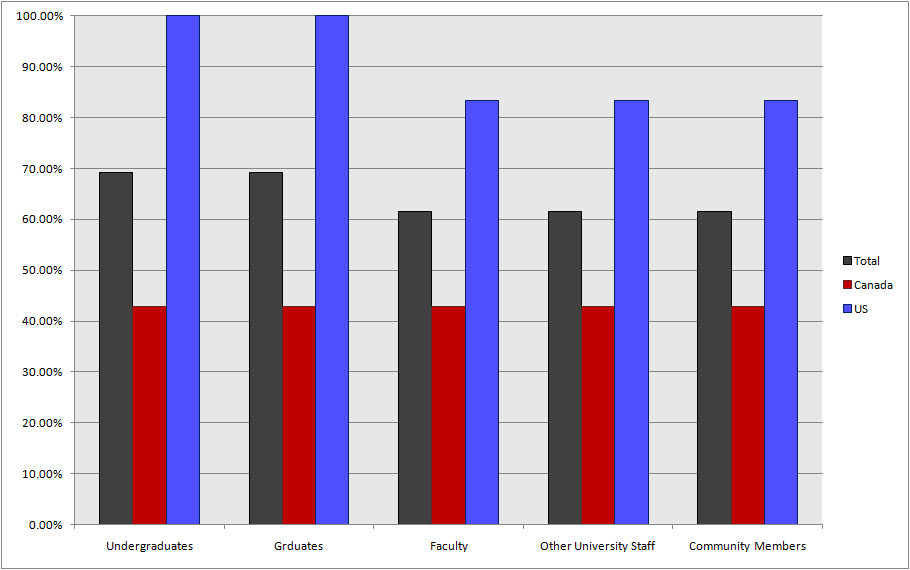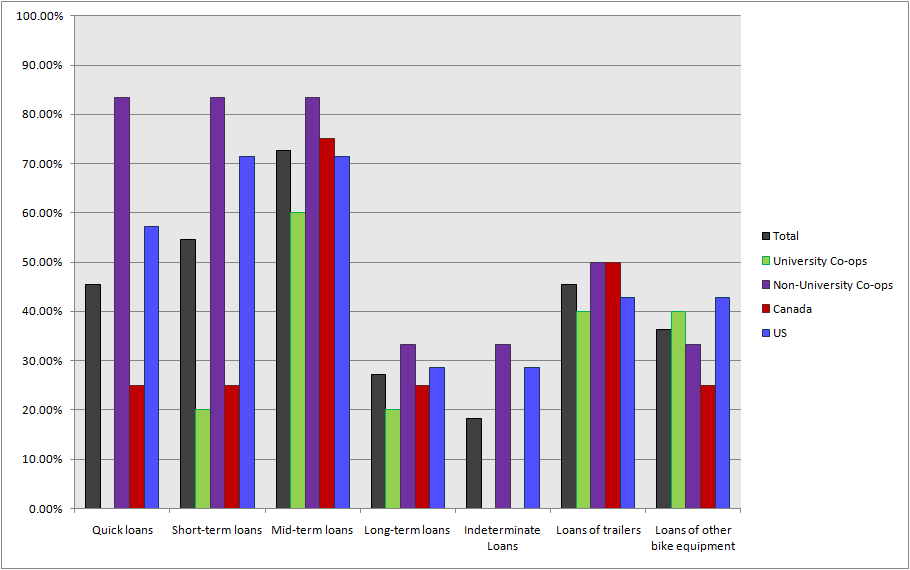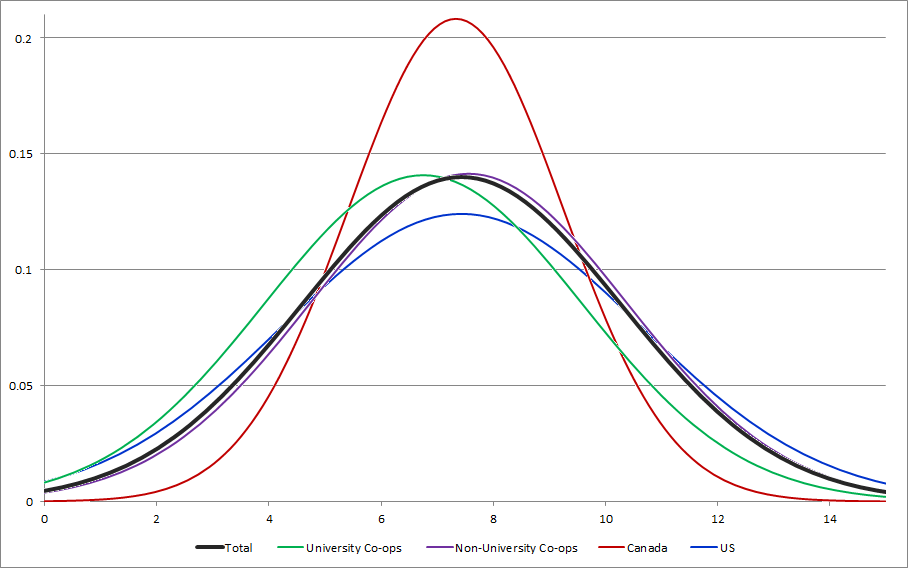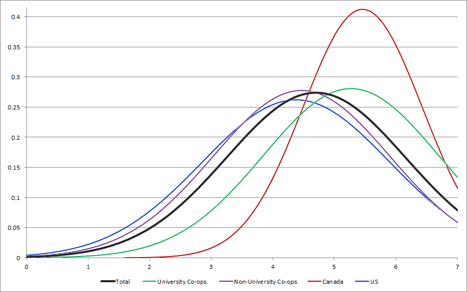 This same size was not extremely small, 49 collectives contributed in total, but it is small enough that when broken down into smaller subsets the size becomes problematic. For example, when comparing results between US and Canadian collectives, the Canadian subset contains only 15 respondents, thus it is hard to really tell the difference between arbitrary fluctuations and true trends.